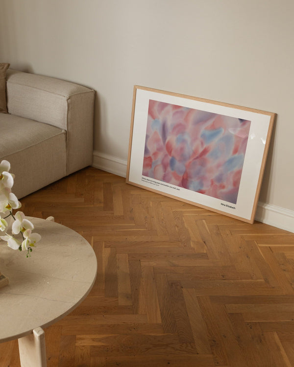 The art poster: “Where does one thing start and another one end” by the artist Nina Elizabeth is a painted poster that is curated by Peléton. The poster by Nina Elizabeth is open to interpretation.