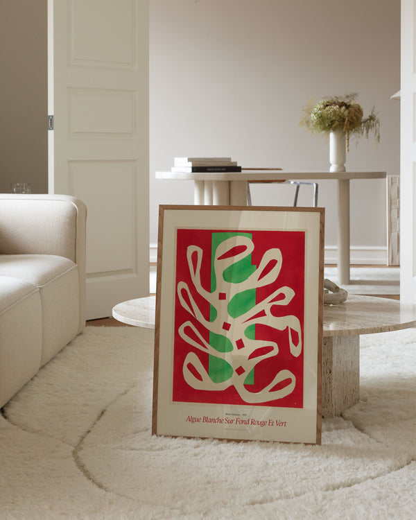 The art poster: “Algue Blanche Sur Fond Rouge Et Vert” by the artist Henri Matisse is a painted poster recreated by Peléton. This poster is part of Peléton's vintage collection with a museum layout. The art poster is produced on quality paper, with long durability, high opacity, and detailed color reproduction.