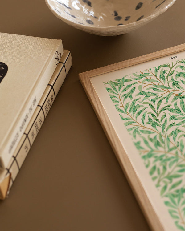 The Frames in oak are made of solid oak. The dark variant is stained to achieve a deep, warm tone, while the black Frame is made of black-painted pine with the same elegant profile.